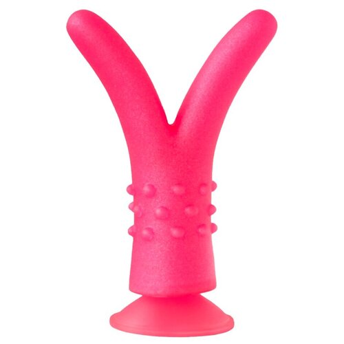 Un plug à deux « queues » est conçu pour une stimulation renforcée de la voûte vaginale chez la femme ou pour une stimulation intense de la prostate chez l'homme. Pour l'insertion, les « queues » sont pressées avec les doigts et insérées en douceur à l'intérieur. En raison de l'élasticité du matériau, les pointes du produit divergent vers l'intérieur dans différentes directions et, lorsqu'elles sont tournées, commencent à stimuler intensément les parois du vagin ou de l'anus. De plus, il existe de petits tubercules arrondis sur le corps du gode, qui peuvent en outre masser le vestibule du vagin ou l'entrée de l'anus lors de mouvements de rotation ou de translation.Stimulateur rose à pointe fourchue - 16 cm. (LOVETOY (A-Polymer) 215600) Un plug à deux « queues » est conçu pour une stimulation renforcée de la voûte vaginale chez la femme ou pour une stimulation intensive de la prostate chez l'homme. Pour l'insertion, les « queues » sont pressées avec vos doigts et insérées en douceur à l'intérieur. En raison de l'élasticité du matériau, les pointes du produit divergent vers l'intérieur dans différentes directions et, lorsqu'elles sont tournées, commencent à stimuler intensément les parois du vagin ou de l'anus. De plus, il existe de petits tubercules arrondis sur le corps du gode, qui peuvent en outre masser le vestibule du vagin ou l'entrée de l'anus lors de mouvements de rotation ou de translation. Longueur : 16,00 cm. Diamètre : 4,50 cm.
