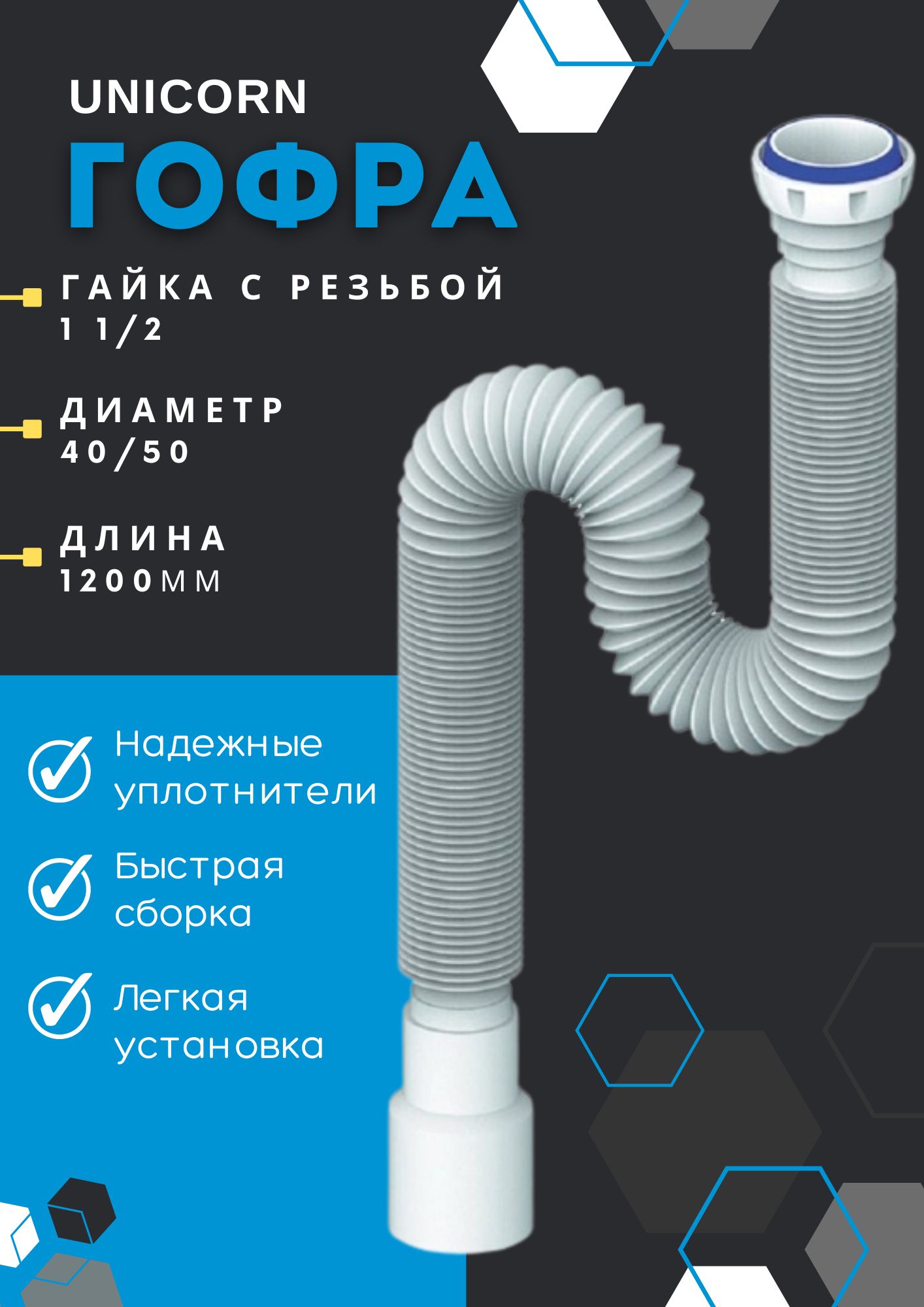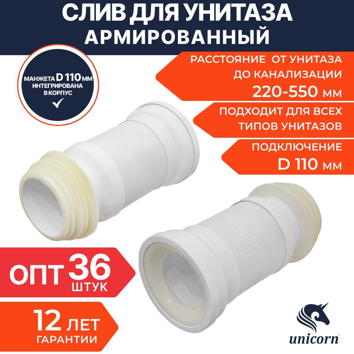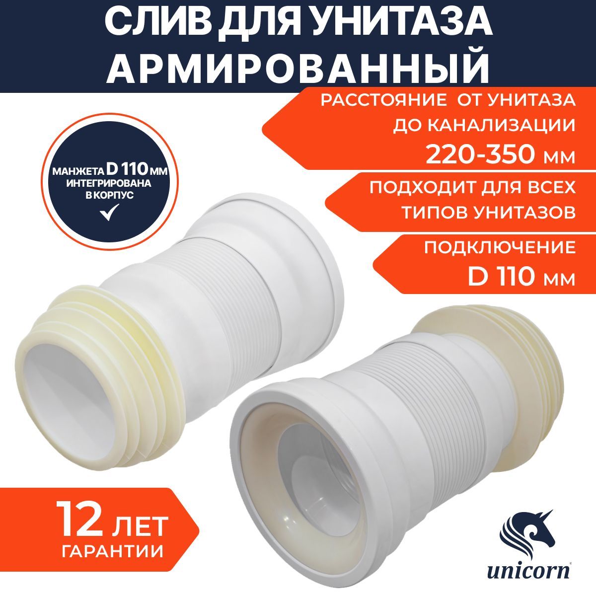 Гофра для унитаза unicorn