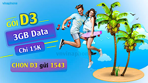 Gói D3 VinaPhone khi đăng ký thành công bạn sẽ có cơ hội sử dụng 3GB data tốc độ cao trong 3 ngày mà giá chỉ 15.000Đ. Chỉ với một cú pháp đơn giản và 15.000Đ trong tài khoản chính là bạn đã có thể đăng ký gói D3 rồi. Nhanh tay đăng ký ngay nào. Gói D3 VinaPhone