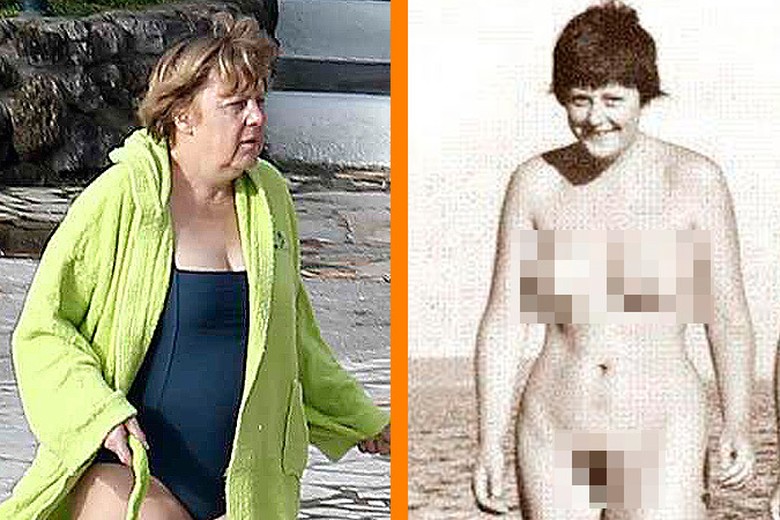 Фотографии обнаженной Ангелы Меркель на нудистском пляже . . .