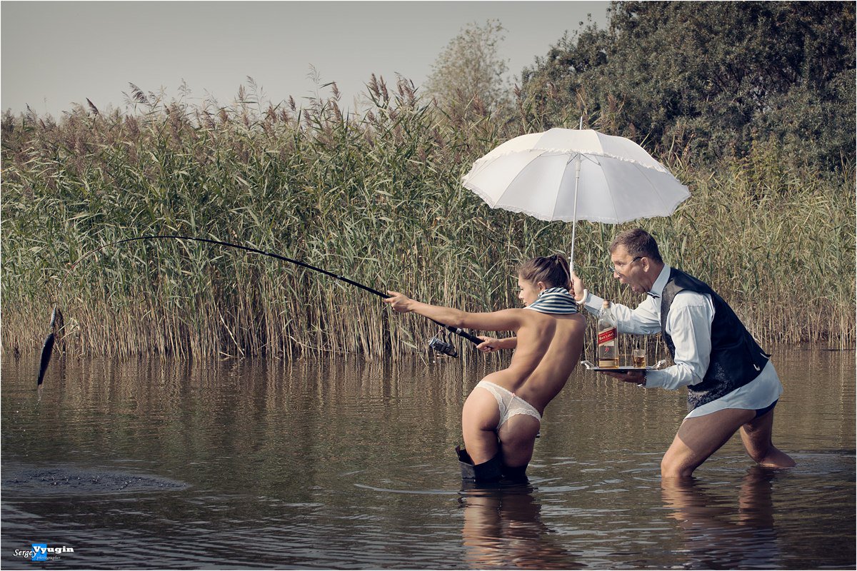 Голая Девка Удит В Реке Рыбу
