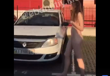 Голая девушка на парковке