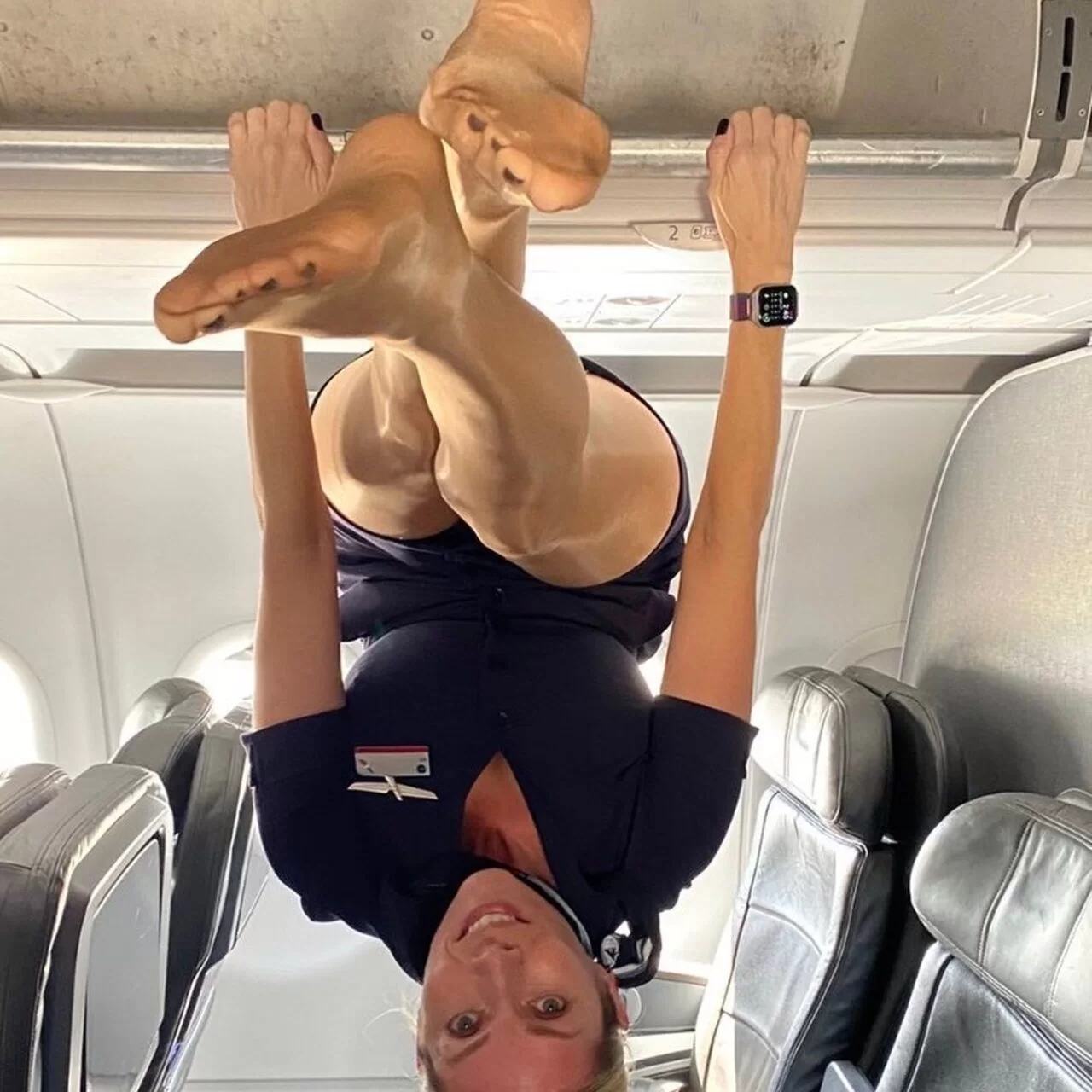 Голая стюардесса раздвигает ноги