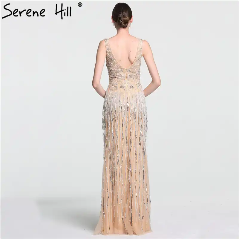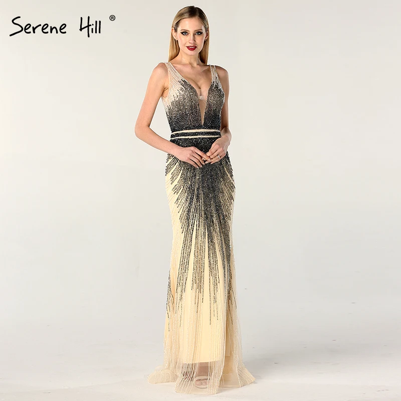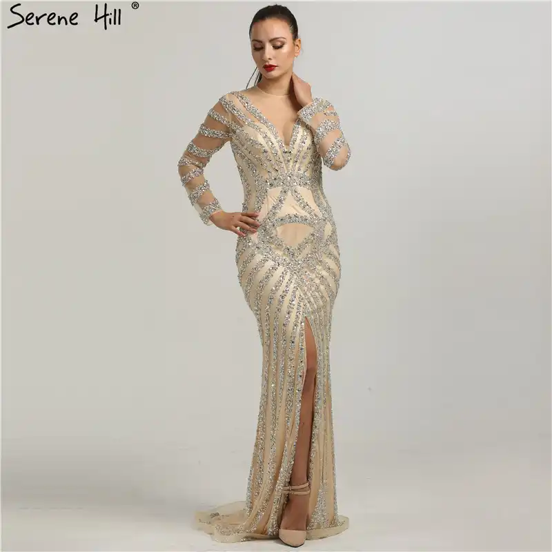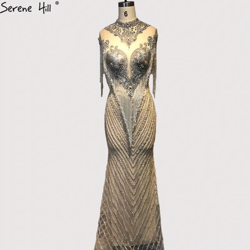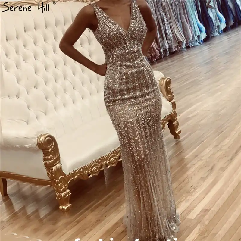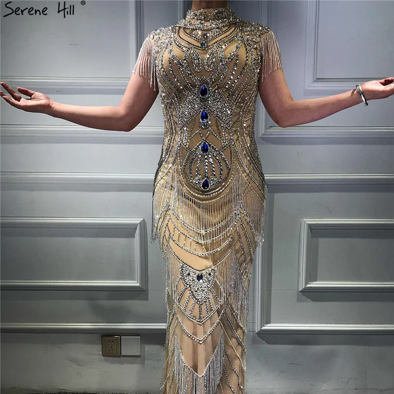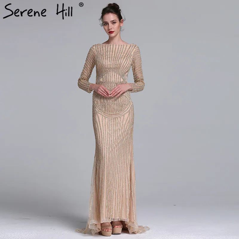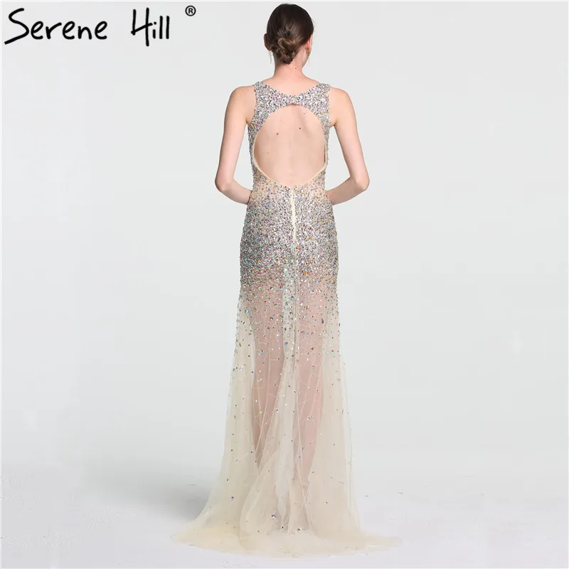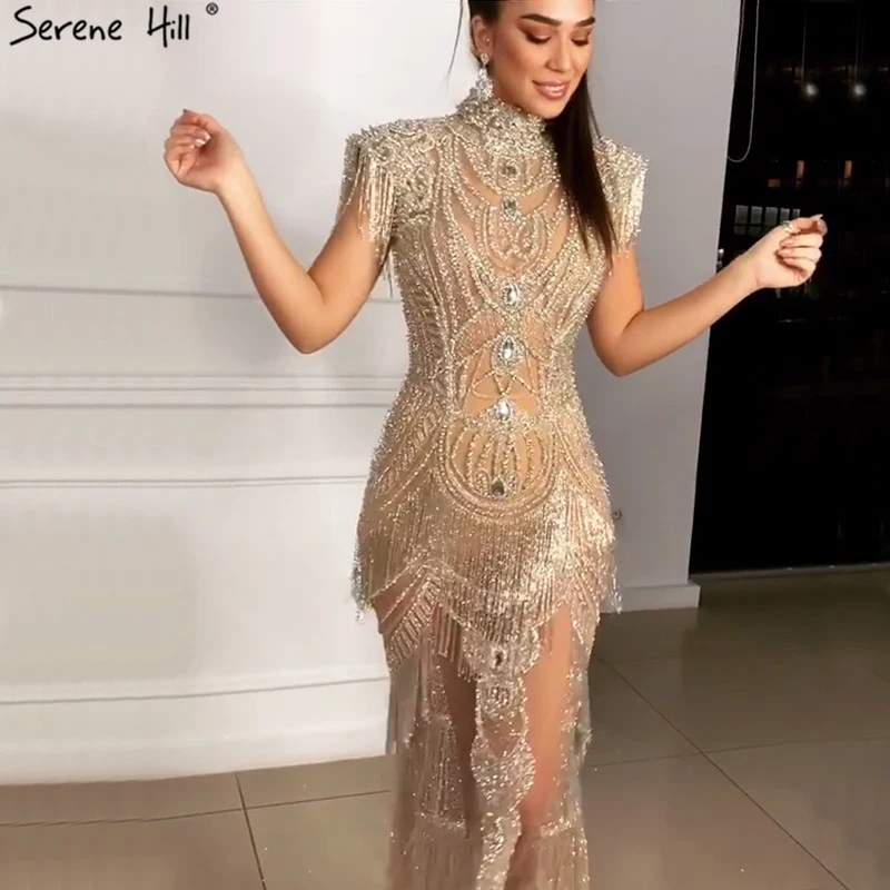 Gold Backless Mermaid Sexy Evening Dresses 2022 Dubai Crystal Beading Luxury Formal Dress Design Serene Hill LA70165