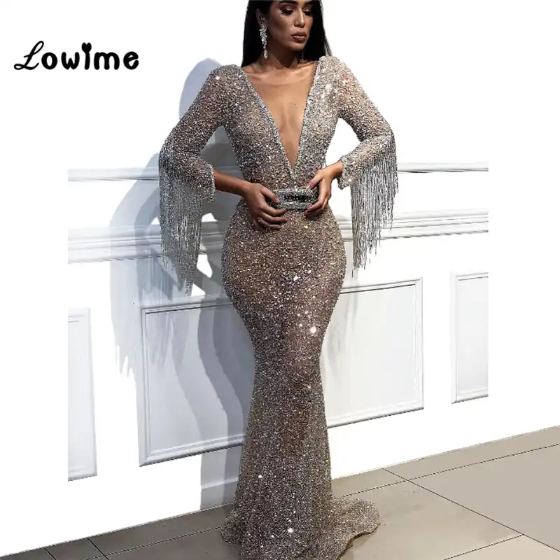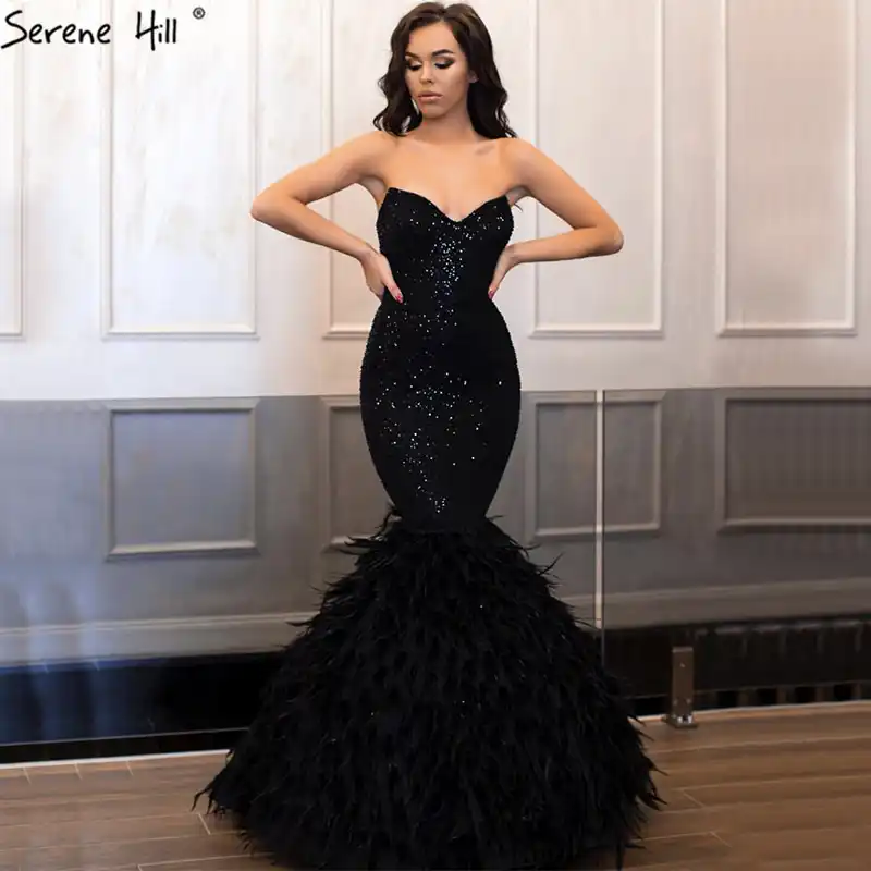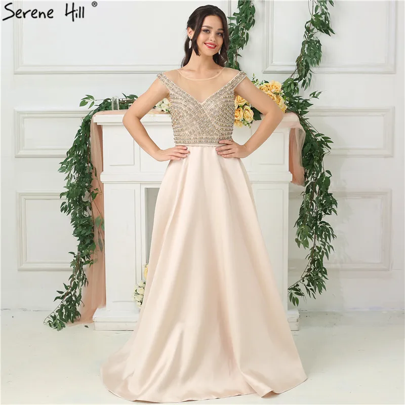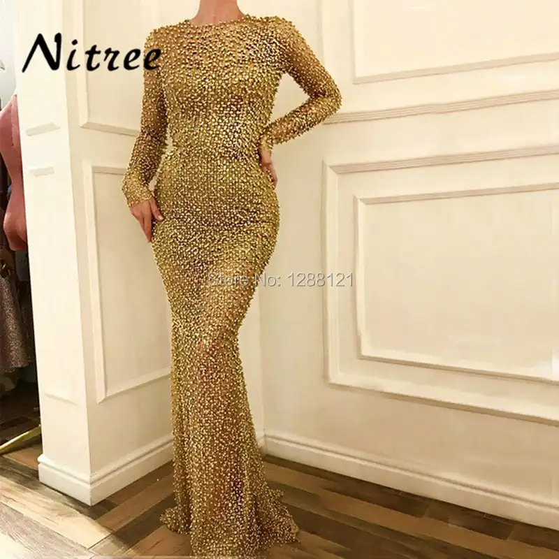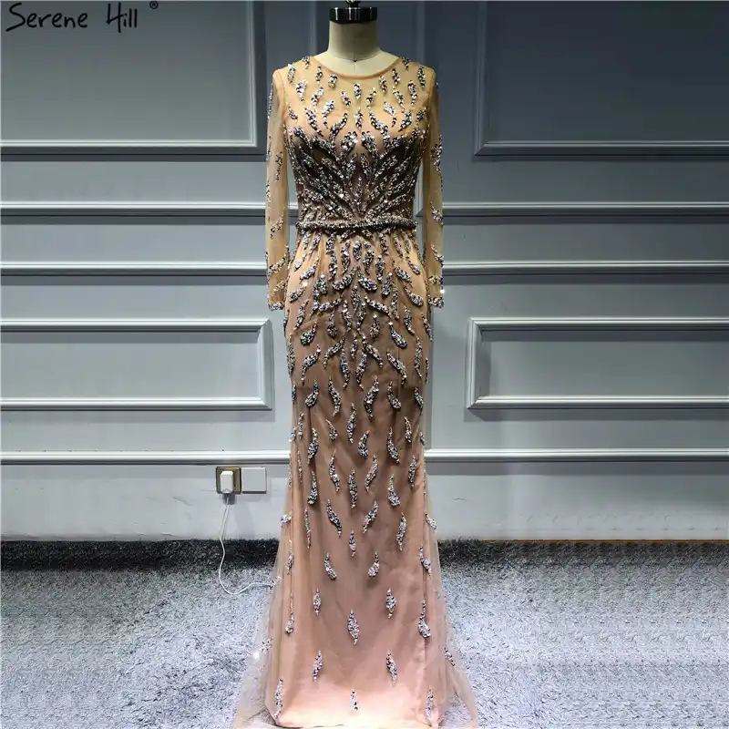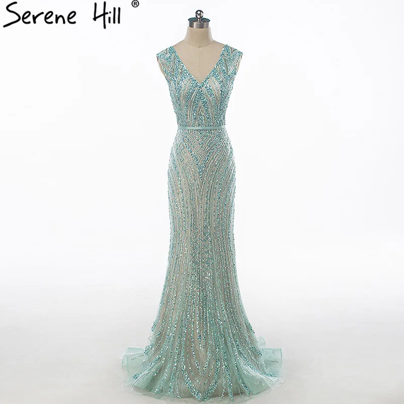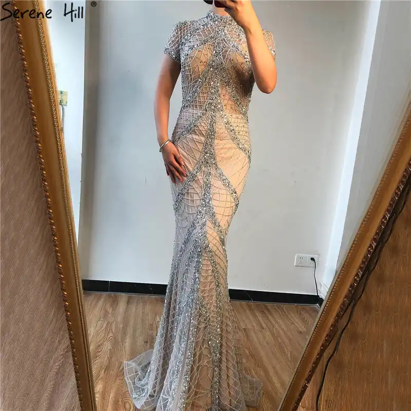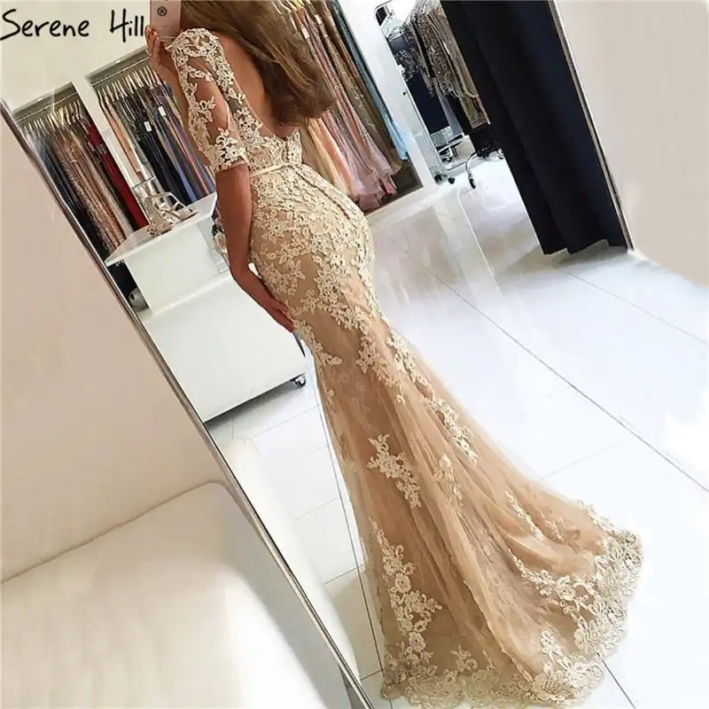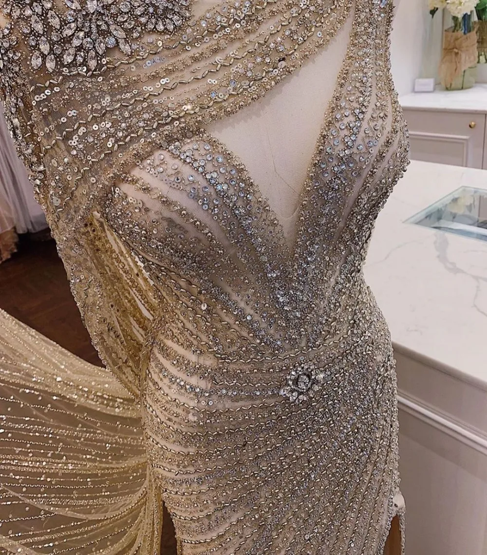 Gold Backless Mermaid Sexy Evening Dresses 2022 Dubai Crystal Beading Luxury Formal Dress Design Serene Hill LA70165