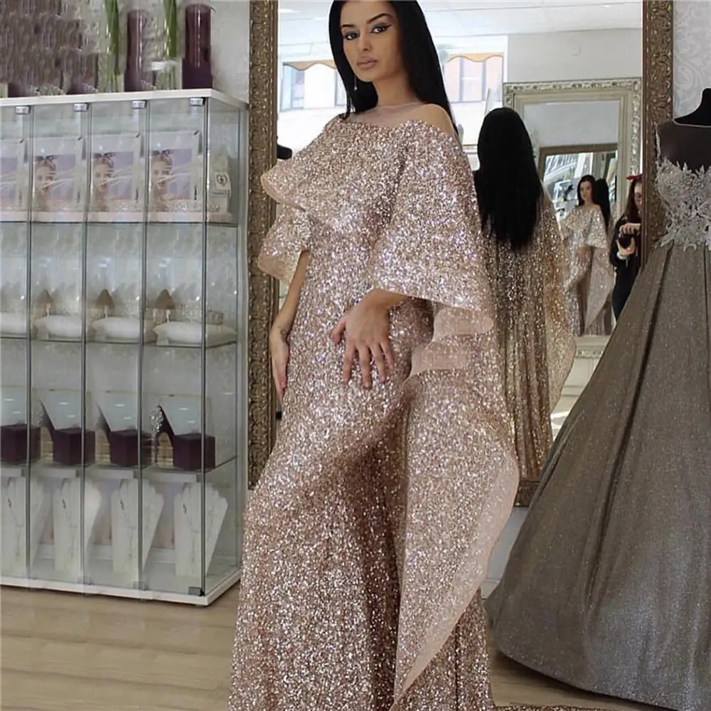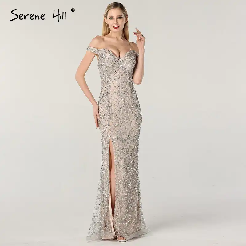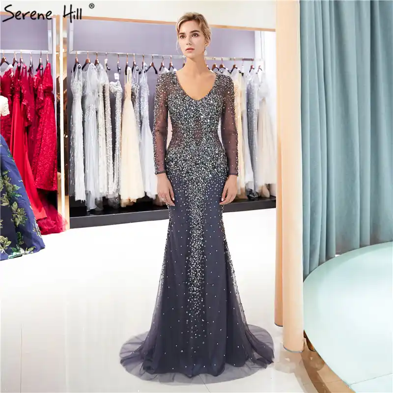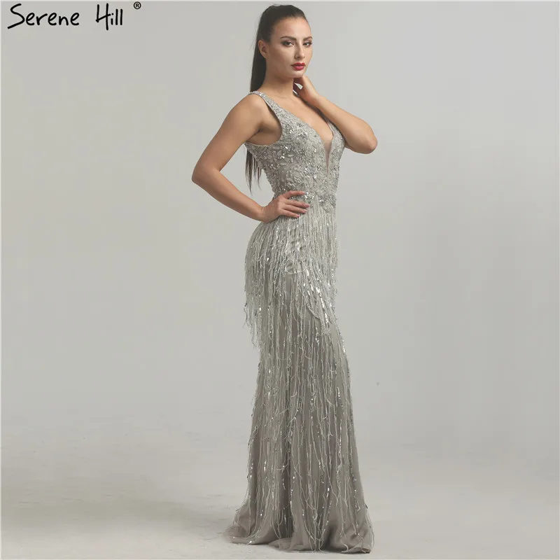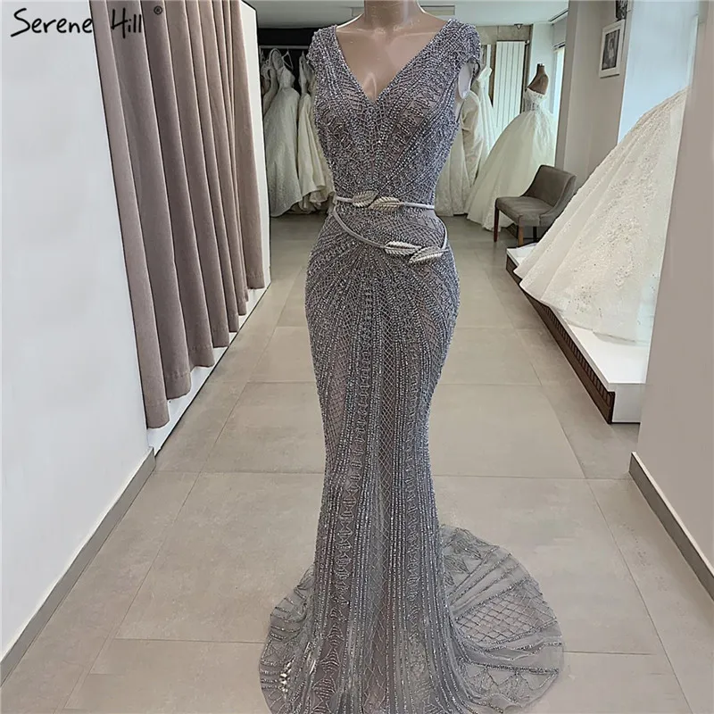 Serene Hill Grey Arabia Luxury Cape Sleeves Beading A-Line Evening Dresses 2022 Formal Dress Gowns LA71047