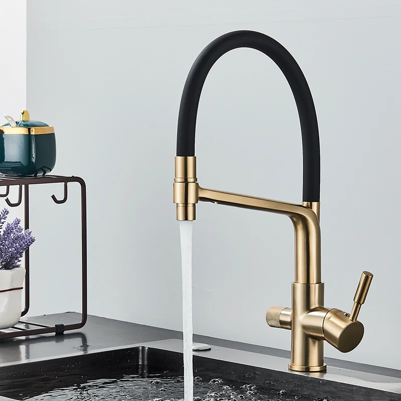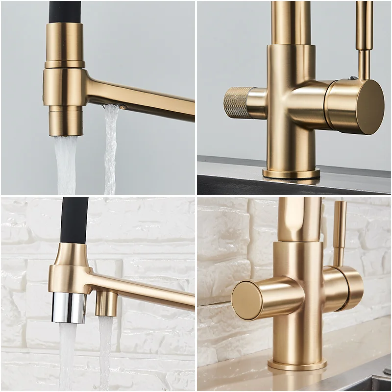 UgYUGQlFtOHere you can buy Gold Kitchen Faucet Filtered Water Dual Spout Purification Feature Tap 360 Rotation Crane For with free delivery to your post office.