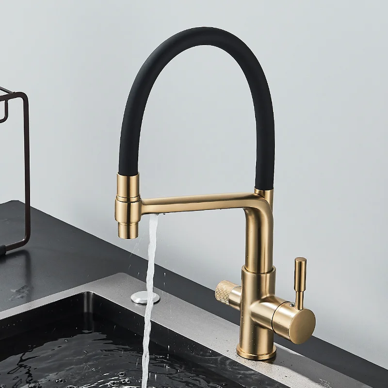 "Gold Kitchen Faucet Filtered Water Dual Spout Purification Feature Tap 360 Rotation Crane For " * Buy Now With Free Shipping Just For $146