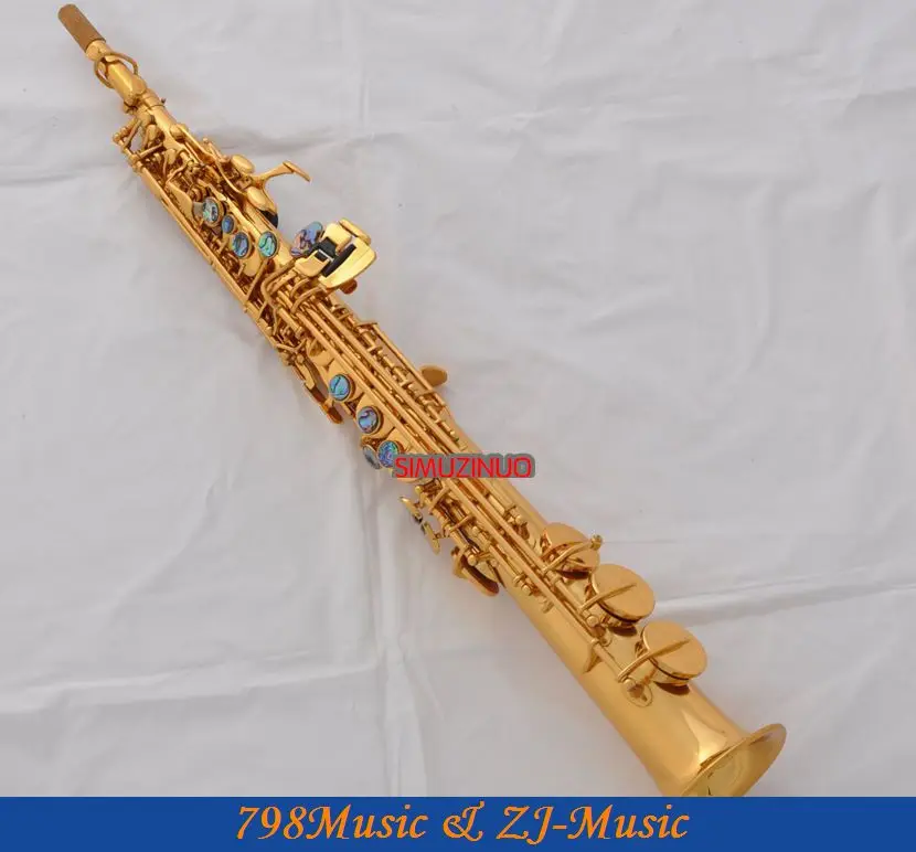 Gold Straight Soprano Saxophone Sax Ablone Shell Key High F# G Free Case 10 Reed - Купить с бесплатной доставкой