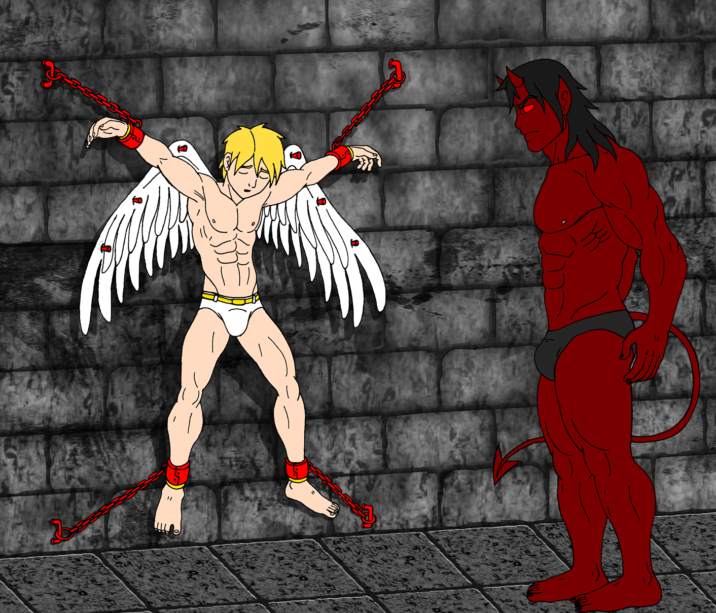 Golden-Haired angel vs darksome penis