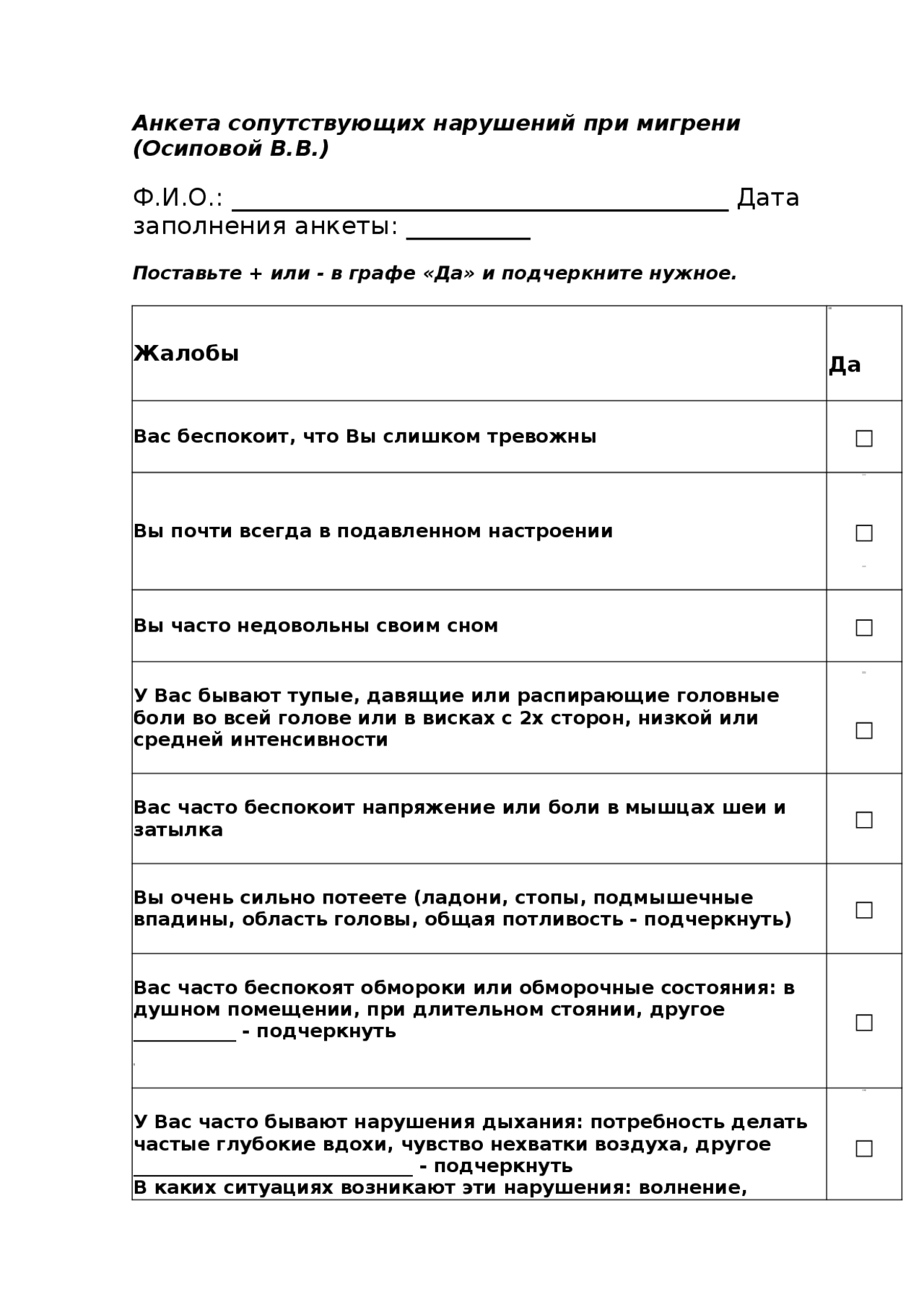 Головные боли смп карта