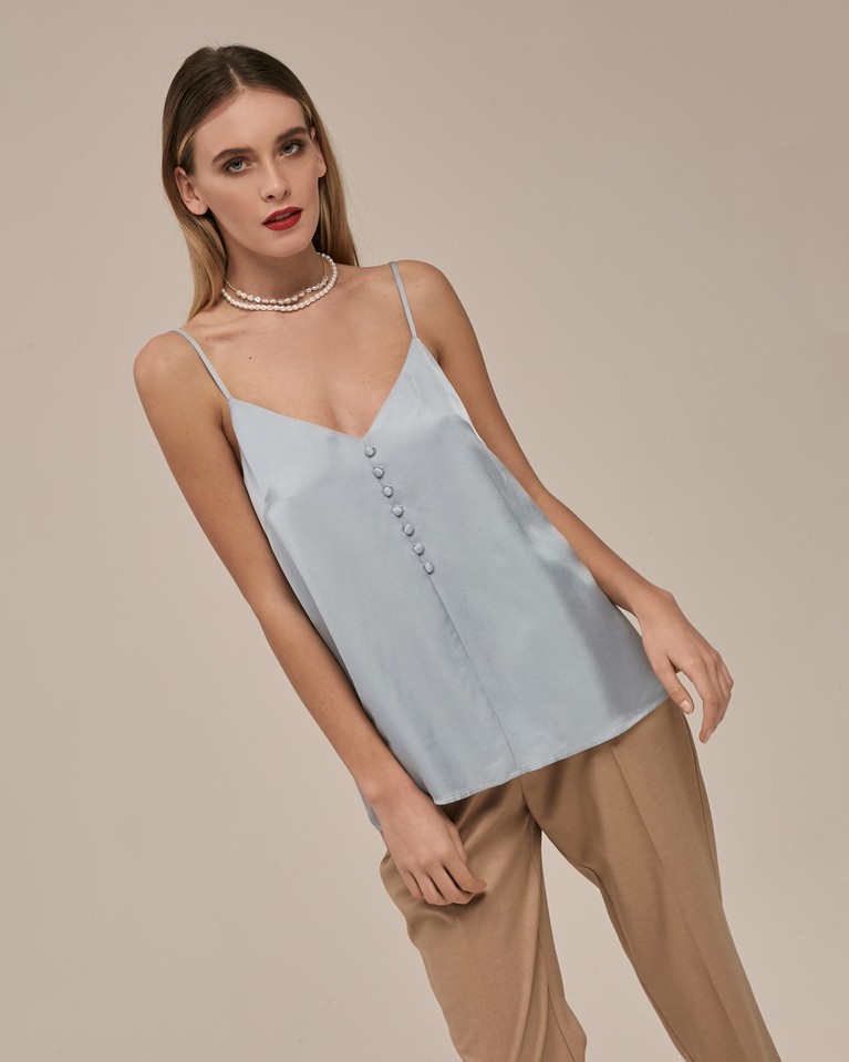 Голубое шёлковое платье в горошек в бельевом стиле ...
