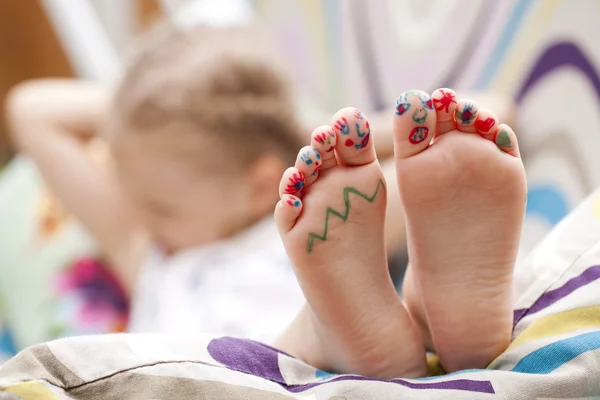 Ноги девочек образуют круг . . . Фото на кровати девочек, лежащих на подушке . . . Голые ноги, свисающие с каменной пристани . . .