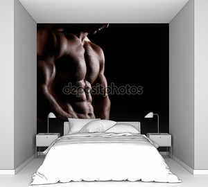 Сильный спортсмен демонстрирует обнаженное мускулистое . . .