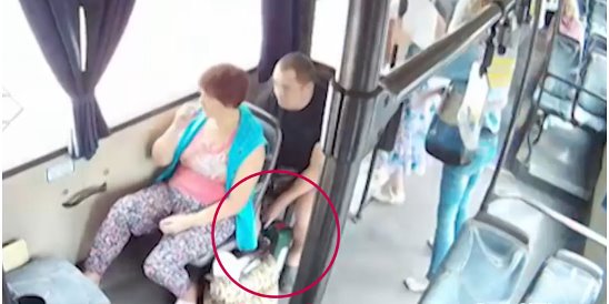 Незнакомец облапал сиськи девушки в автобусе .