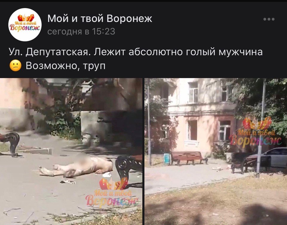 Он лежал прямо на асфальте под одним из домов, расположенных на Депутатской улице . — Лежит абсолютно голый мужчина . Возможно, труп, — писал неизвестный оператор в паблике «Мой и твой . . .