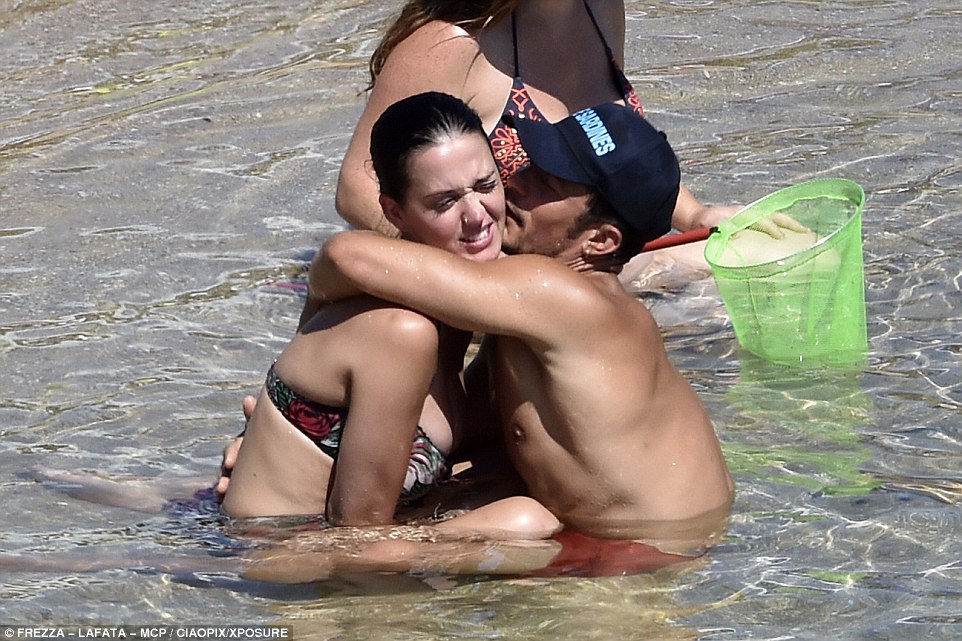 Папарацци засняли известного голливудского актера Орландо Блума и его девушку Кэти Перри на отдном из пляжей Италии .