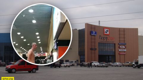 По торговому центру на Западном в Ростове разгуливал голый парень . Время уже позднее, и в торговом центре почти никого нет, но внизу "неожиданного посетителя" встречает охранник .