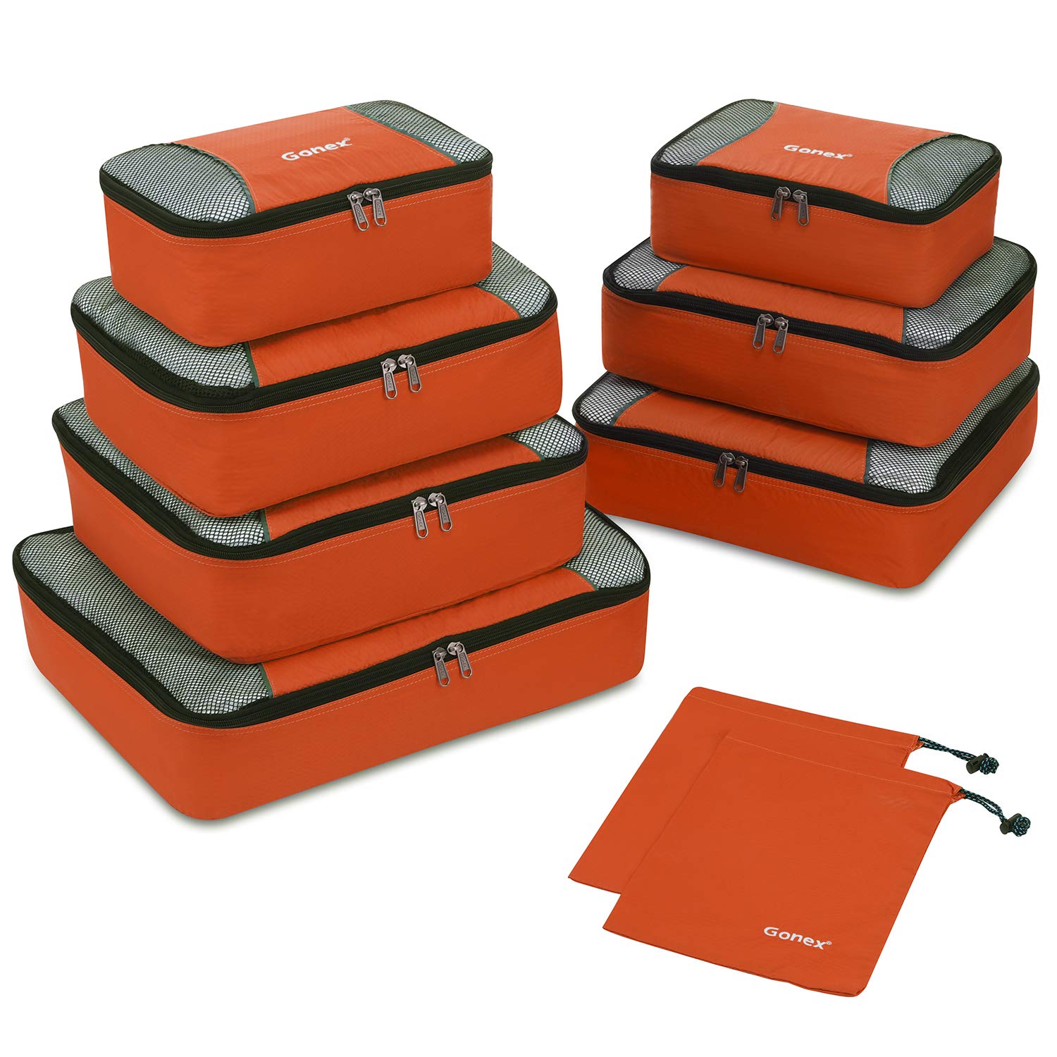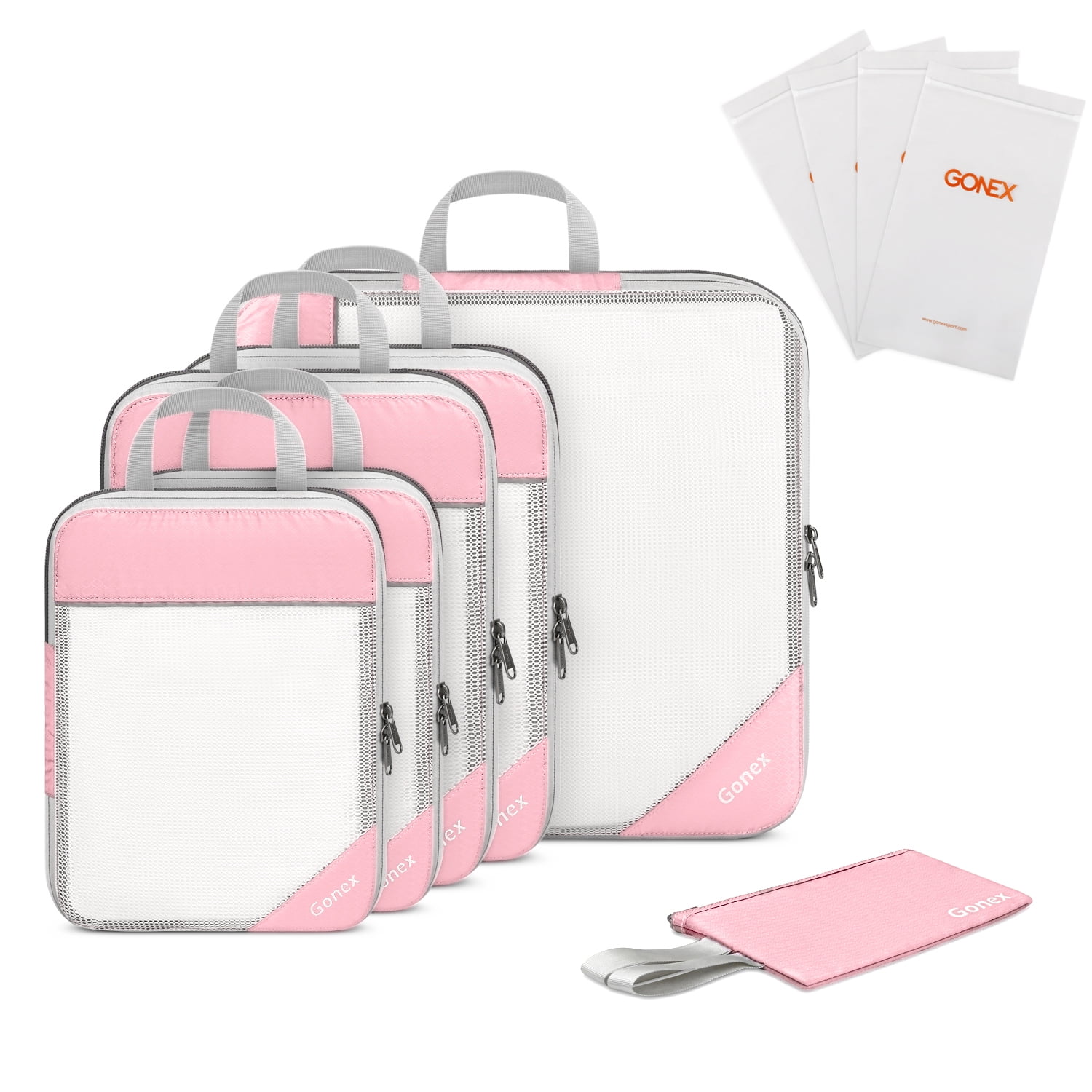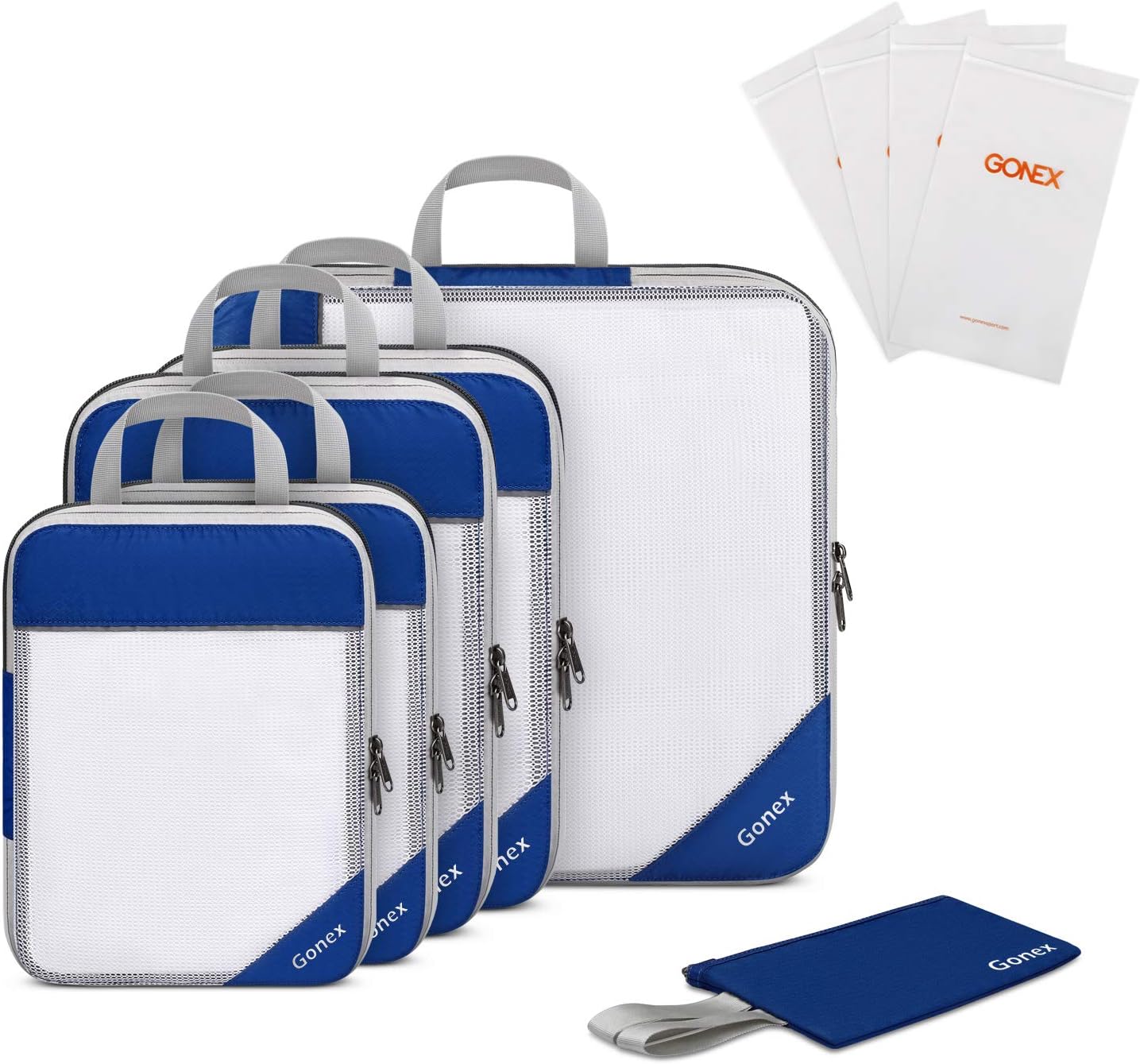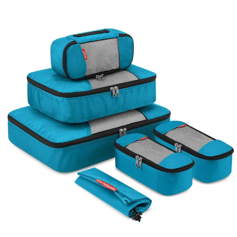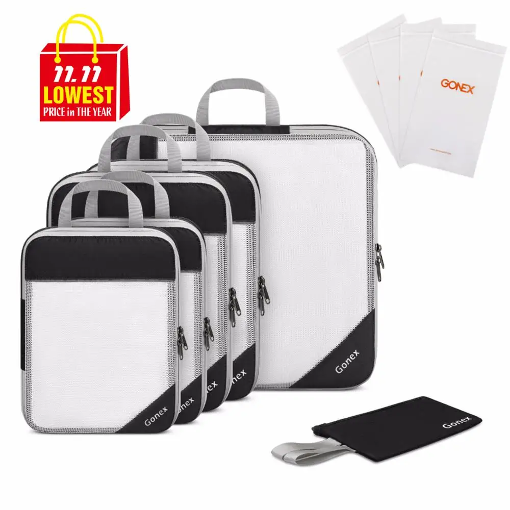 Gonex 10pcs/set Travel Storage Bag Suitcase Organizer Mesh Compression Packing Cubes with Hidden Pocket & 4 Reusable Zip Bags