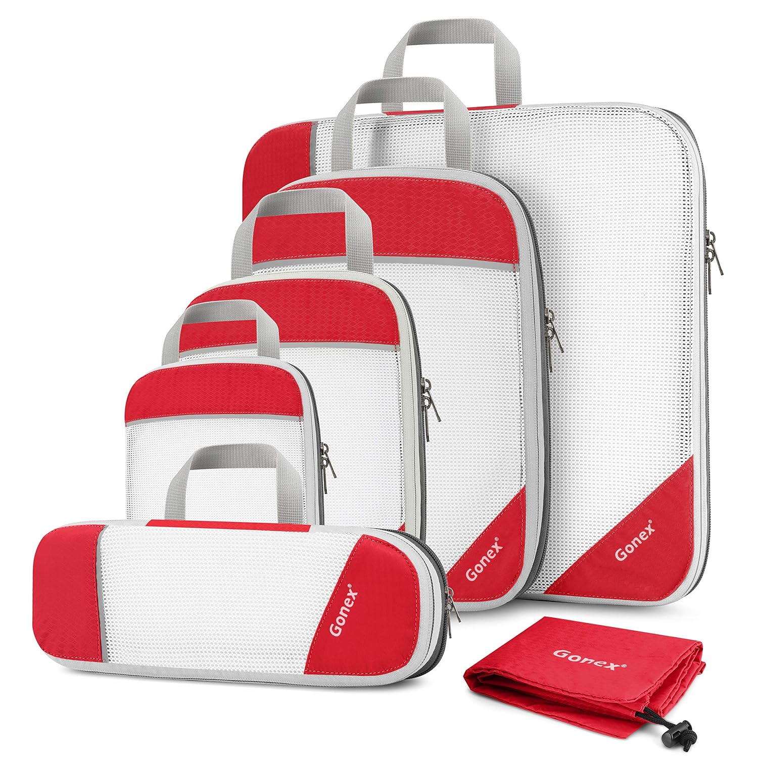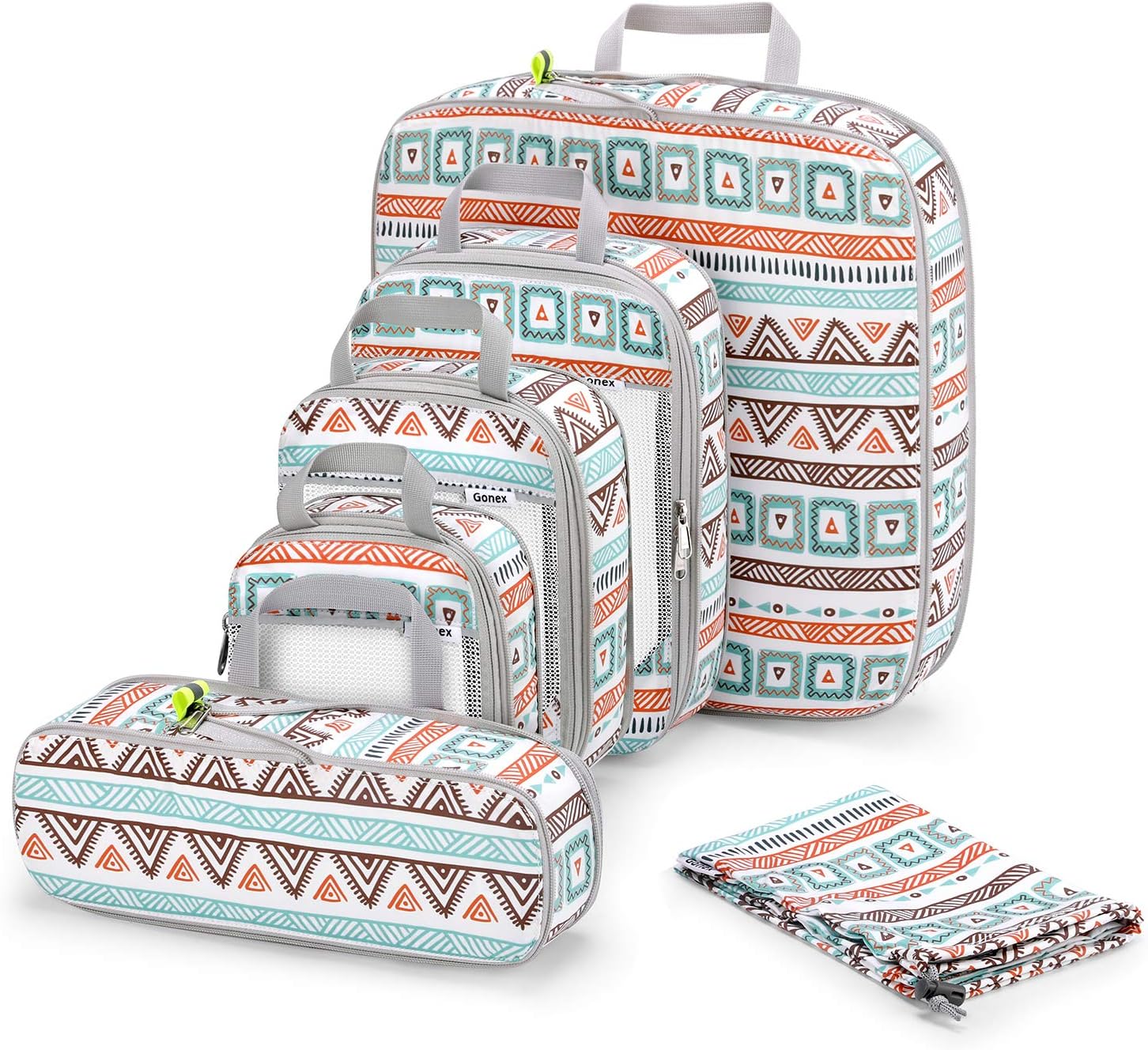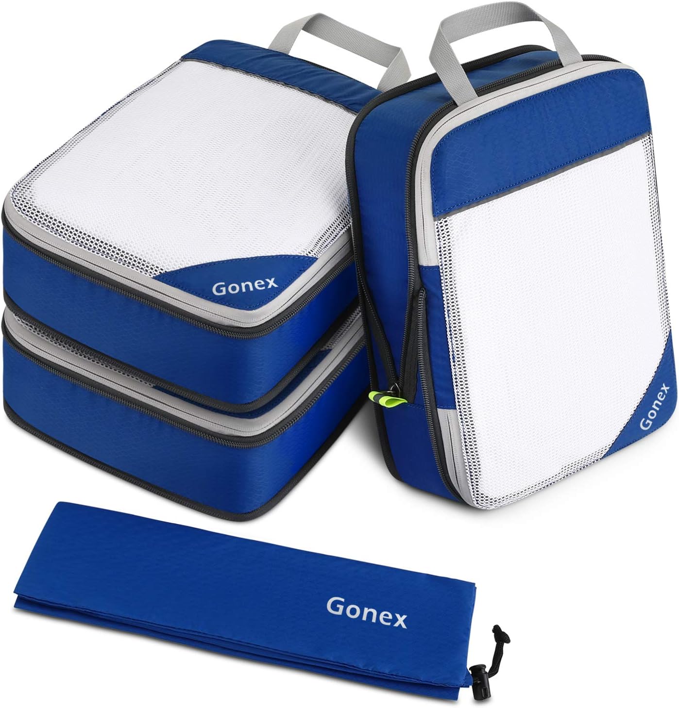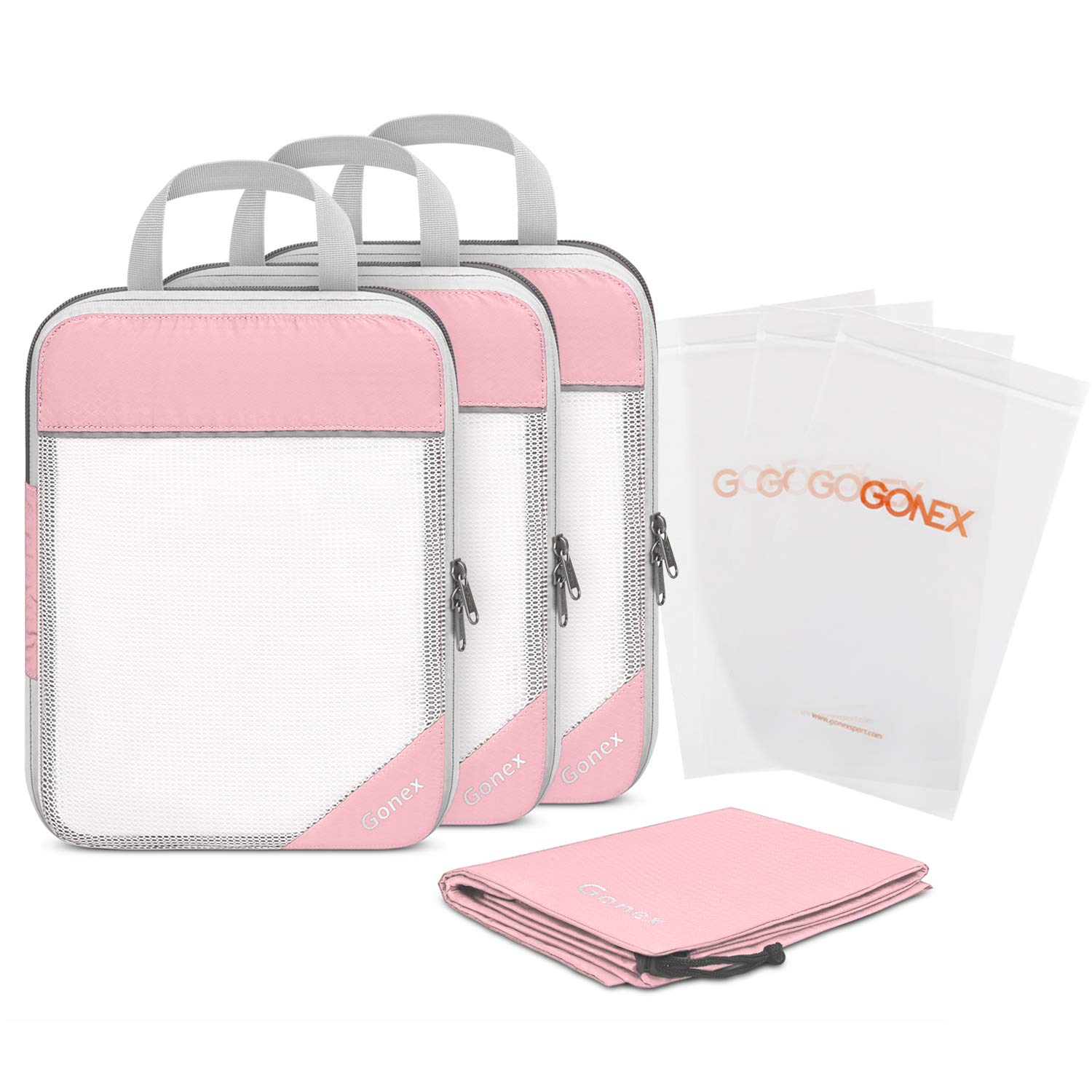 Gonex 10pcs/set Travel Storage Bag Suitcase Organizer Mesh Compression Packing Cubes with Hidden Pocket & 4 Reusable Zip Bags