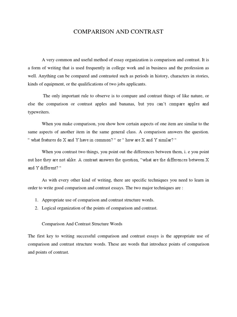 Good Compare And Contrast Essays