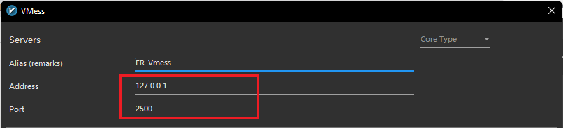 خوب حالا طبق توضیحات گفتیم ما باید پکت ها یا ارتباطمون رو روی پورت 2500 بفرستیم تا این تاخیر رو اعمال بکنه دیگه , خوب بریم یکی از کانفیگایی که از قبل داشتیم رو ادیت بزنیم توی برنامه V2rayN ویندوز یا هر کلاینت دیگه که دارید و مثل عکس زیر در قسمت ادرس 127.0.0.1 رو همون ادرس لوکال یا ای پی سیستم خودمون رو بنویسید و در قسمت پورت پورت 2500 رو بنویسید , هیچ چیز دیگه ی کانفیگ رو تغییر ندید , ذخیر کنید و فعالش کنید , حالا ارتباط ما میاد از روی سیستممون با پورت 2500 رد میشه بستها رو با تاخیر مورد نیاز جابجا میکنه و سلام بر دنیای ازاد :)))))) وقتی میگم بنویسید نترسید اینطوریه راه و روش رو برای خودتون نگه ندارید کسای دیگه میان ازش ایده میگیرن و دست به دست مسیرهای جدید باز میشه