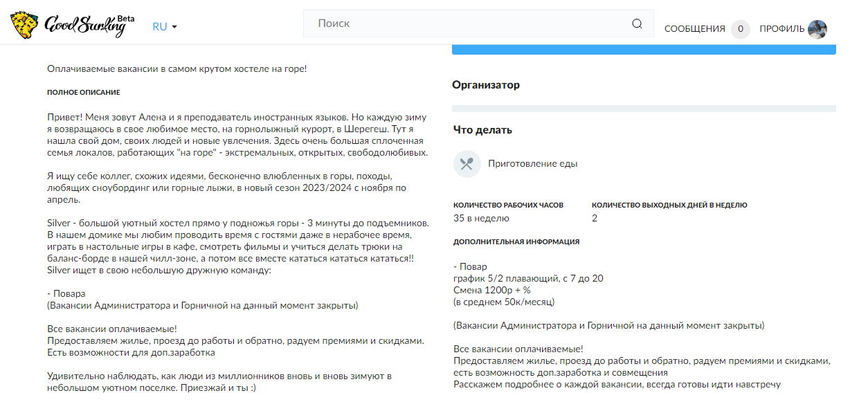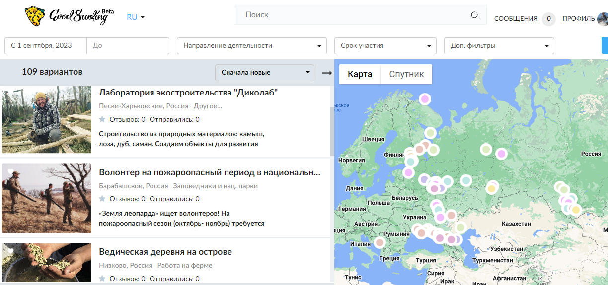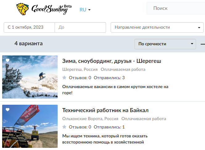На сайте можно найти вакансии, волонтерство, экспедиции, походы, туризм, путешествия в любом направлении. Тут предлагают поработать в проекте в обмен на проживание и питание, есть проекты за оплату.