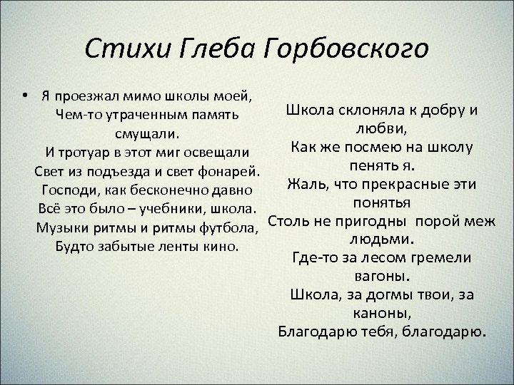 Горбовский стихотворения