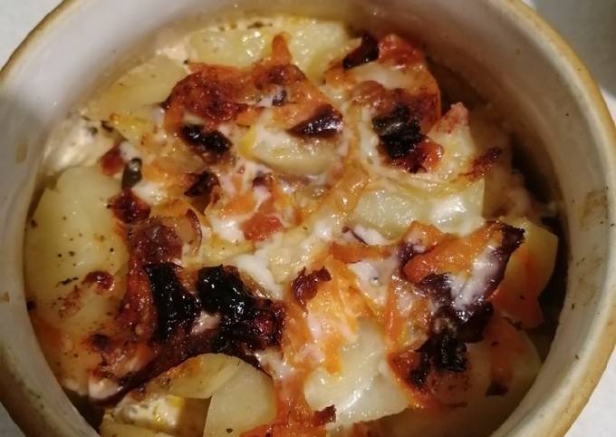 Изначально рецепт был со скумбрией, но теперь я так готовлю и горбушу . Ингредиенты . 1 горбуша среднего размера . 5-6 некрупных картофелин . 3 ст . л . майонеза . смесь перцев . 2 зубчика чеснока . соль . . .