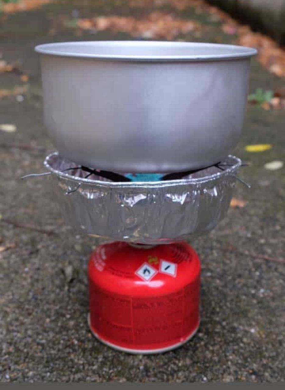 Дальше приведу два примера самодельной ветрозащиты. Прошу заметить, что общим экраном горелку с баллоном никто не закрывает. Все ищется по запросу "DIY backpacking stove windscreen".
