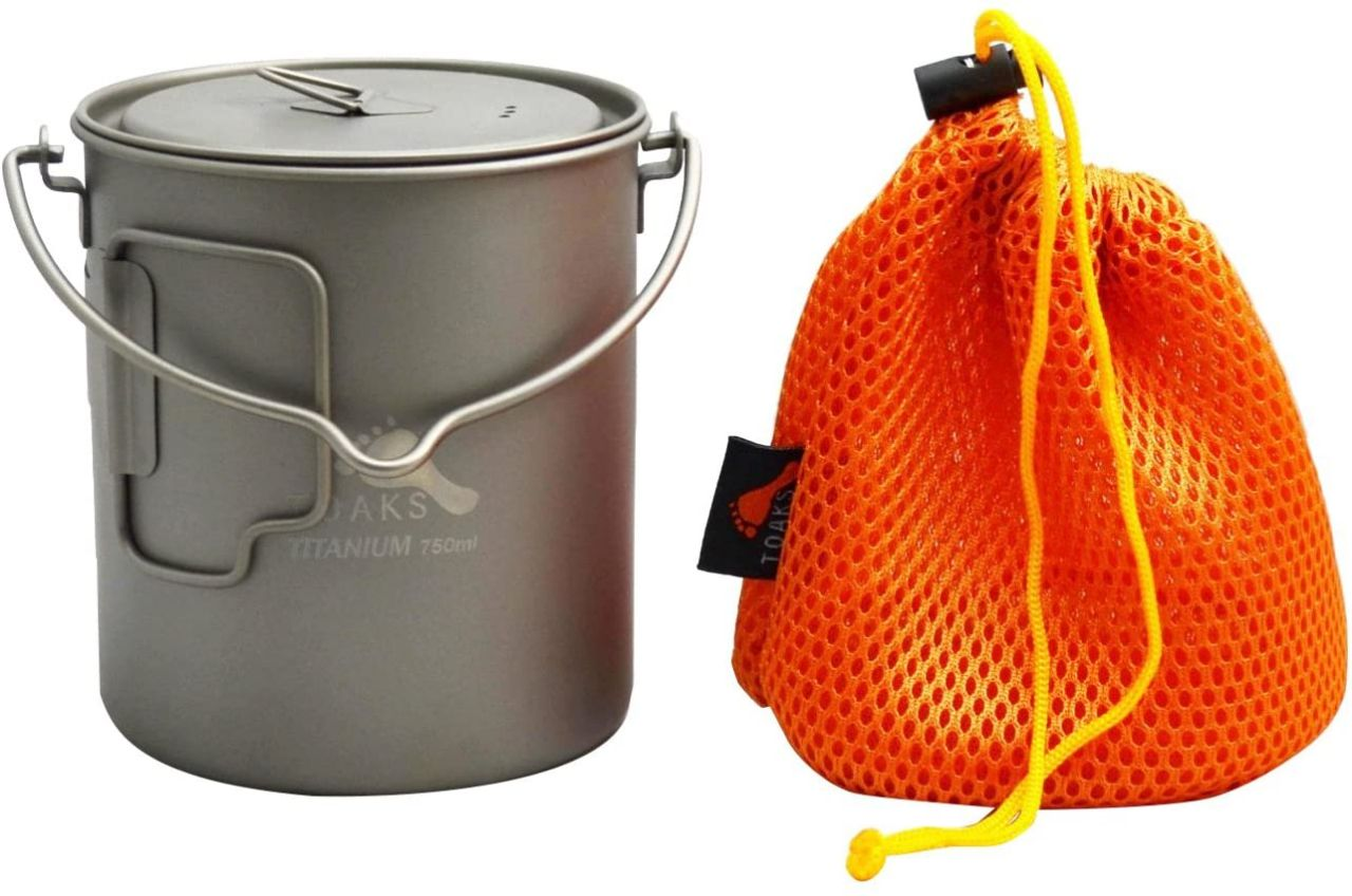 В качестве емкости под готовку я бы порекомендовал обратить внимание на титановые котелки, преимуществом титана является его несомненно лёгкий вес, высокая прочность и низкая теплопроводность, что позволяет ручкам котелка оставаться приемлемо горячими, по сравнению с алюминиевыми котелками. На одного человека достаточно объема в 700-1000мл. Если вы предпочитаете горячий напиток к еде, то берите 1000мл. По форме котелки могут быть узкими, что имеет несомненный плюс в компактности, но тогда внутрь может не поместиться газовый баллон(если вы используете газ), и приводит к меньшей эффективности расхода топлива, т. к. площадь контакта пламени горелки с котелком уменьшается.
