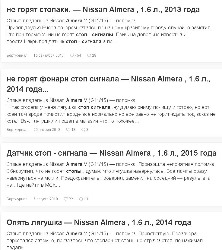 Горит стоп альмера ниссан 118 фото