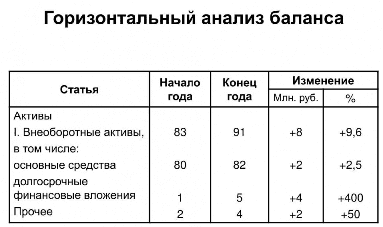 Горизонтальный анализ пример с выводами