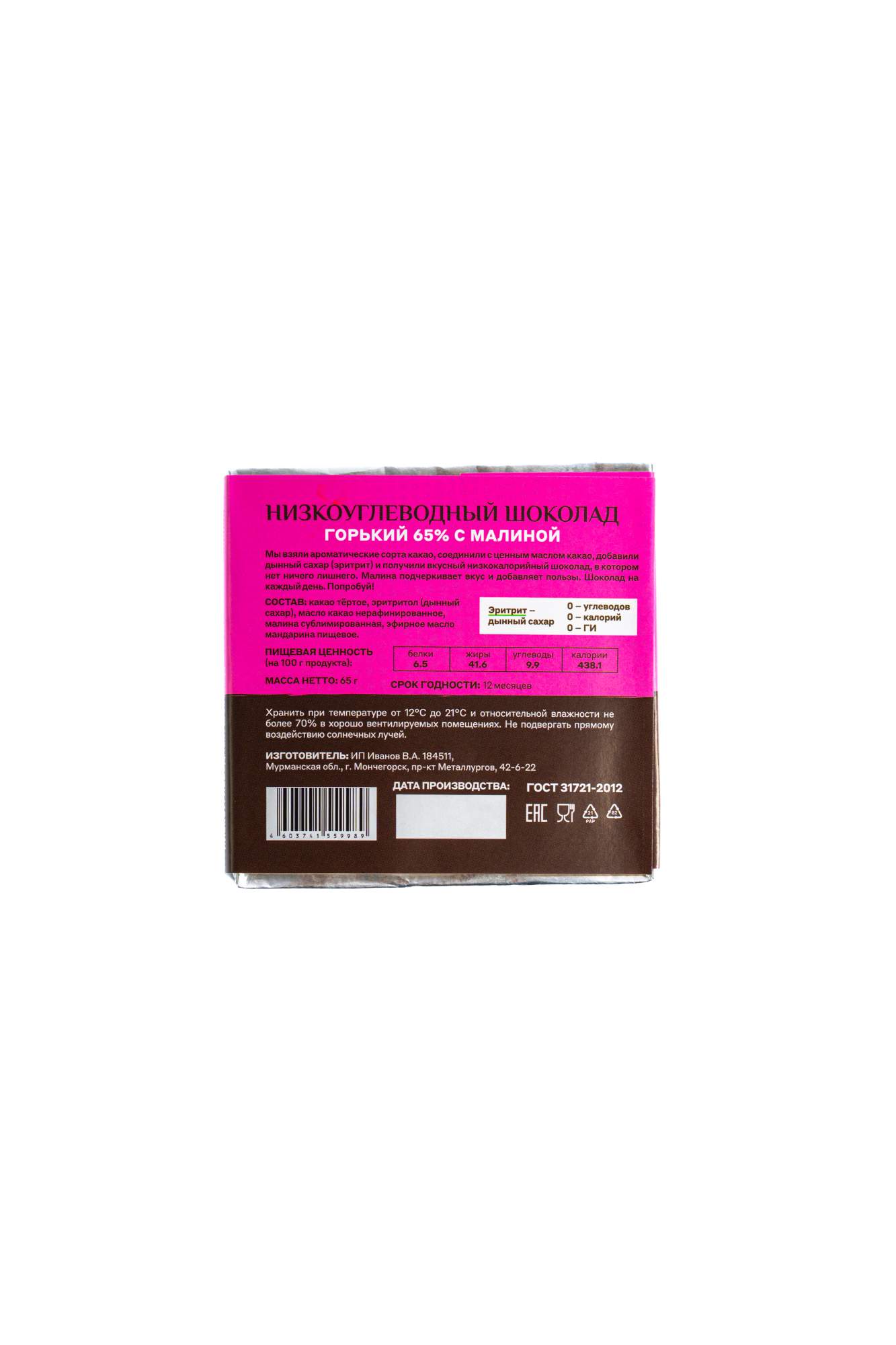Горький шоколад с малиной