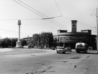 Душанбе на старых открытках . Площадь имени Ленина . Панорама города . (Вид сверху на площадь им . Айни . На переднем плане - гостиница Душанбе, за ней слева - краеведческий музей, правее него - старый «Детский мир» .