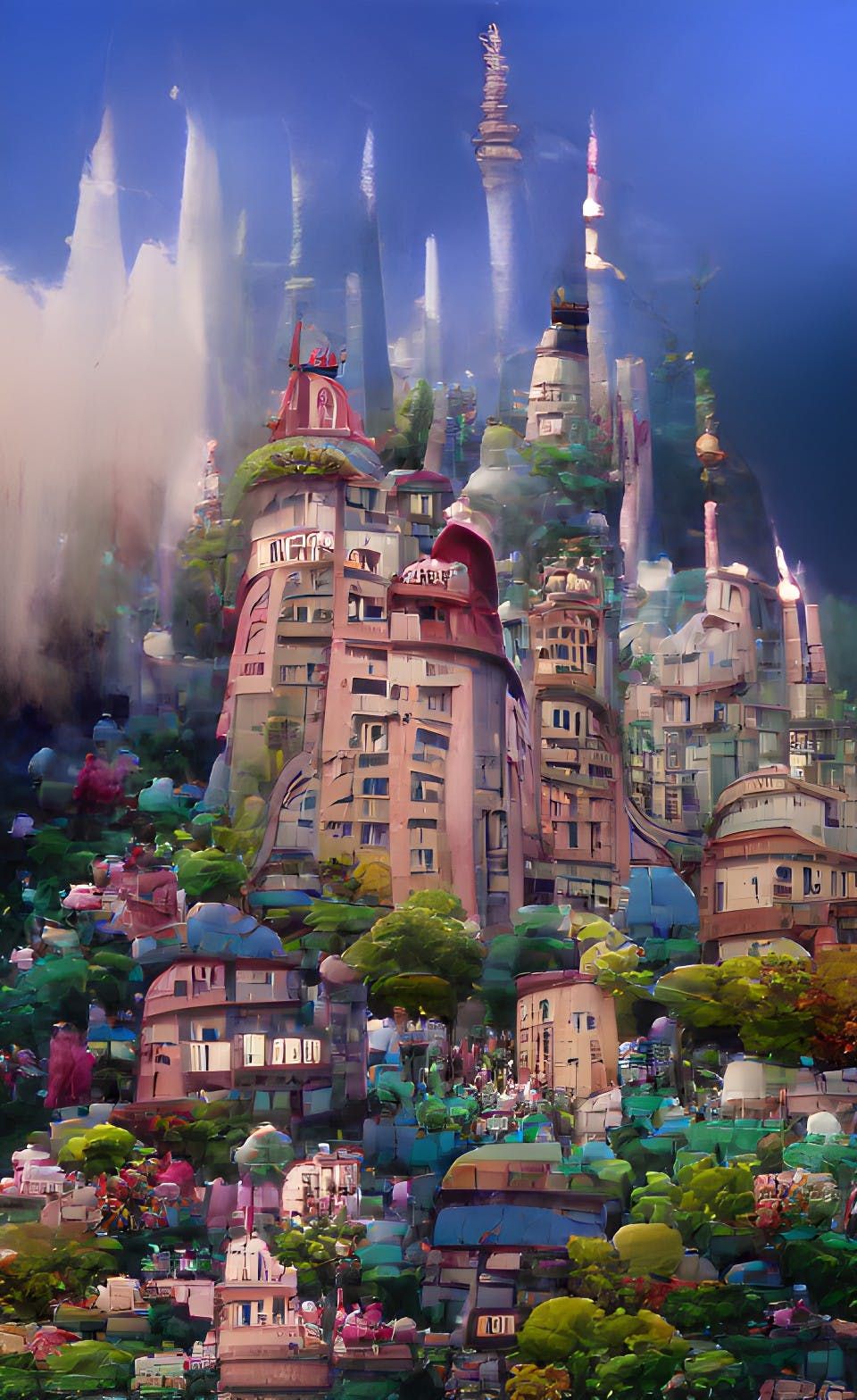 Все дома красочные, отделанные драгоценными камнями. В центре города большая площадь, с красивой, зелёной аллеей с множеством цветов. В центре площади стоит большой алмазный фантан, рядом с которым обычно отдыхают маленькие марсиане во главе с губернатором Эриком.