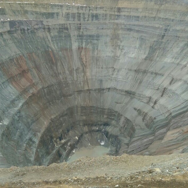 Второе в мире по величине искусственное углубление (больше только медный рудник Бингэм в Юте) - алмазное месторождение, расположено на окраине небольшого города в Восточной Сибири под названием Мирный . Добыча началась в 1955, и сегодня глубина карьера достигает 525 метров, а ширина его равняется 1,25 километрам .