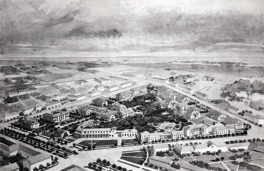 Сам квартал застраивался (в 1946–1948г) между улицами Лазо, Перовской, 1-ой Владимирской и Зеленым проспектом. Возводились 32 двух- и трехэтажных корпуса с квартирами, восемь домов под общежитие, а еще бани, ясли, детский сад, гостиницы и большой парк с фонтаном. Улицы планировали засадить деревьями, чтобы они "скрывали" шум с дорог.
