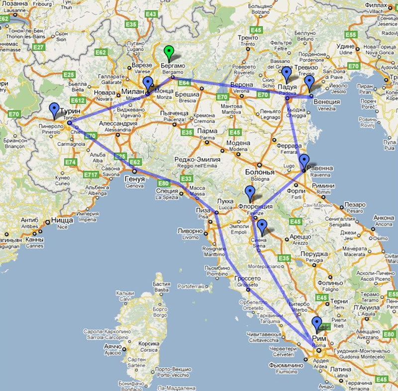 Города италии маршрут