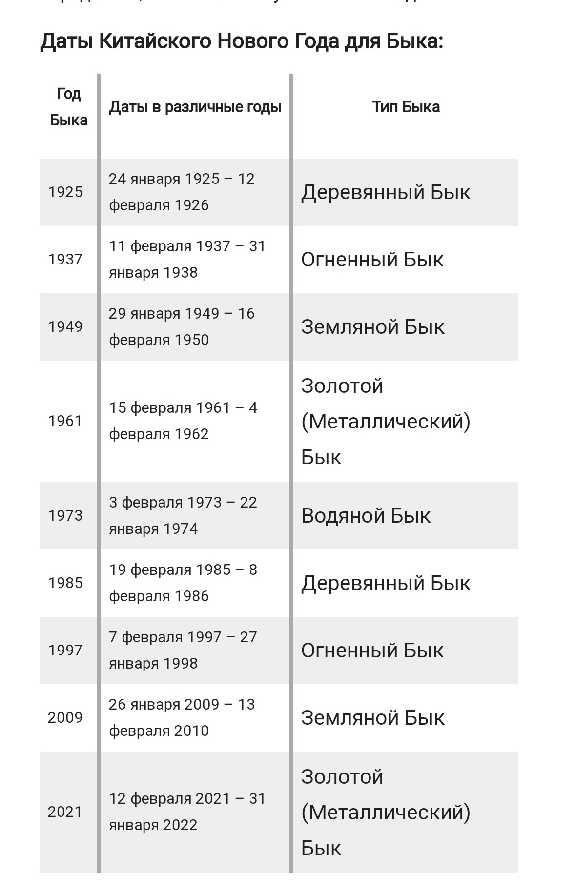 Даты Китайского Нового Года для Быка: