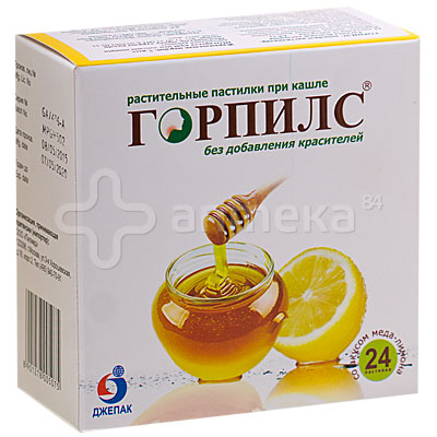 Горпилс - растительные пастилки со вкусом ананаса, апельсина, лимона, клубники, ментола-эвкалипта, меда-лимона и малины, биологически активные добавки к пище - источник глицирризиновой кислоты . Содержит флавоноиды, дубильные вещества и ментол .