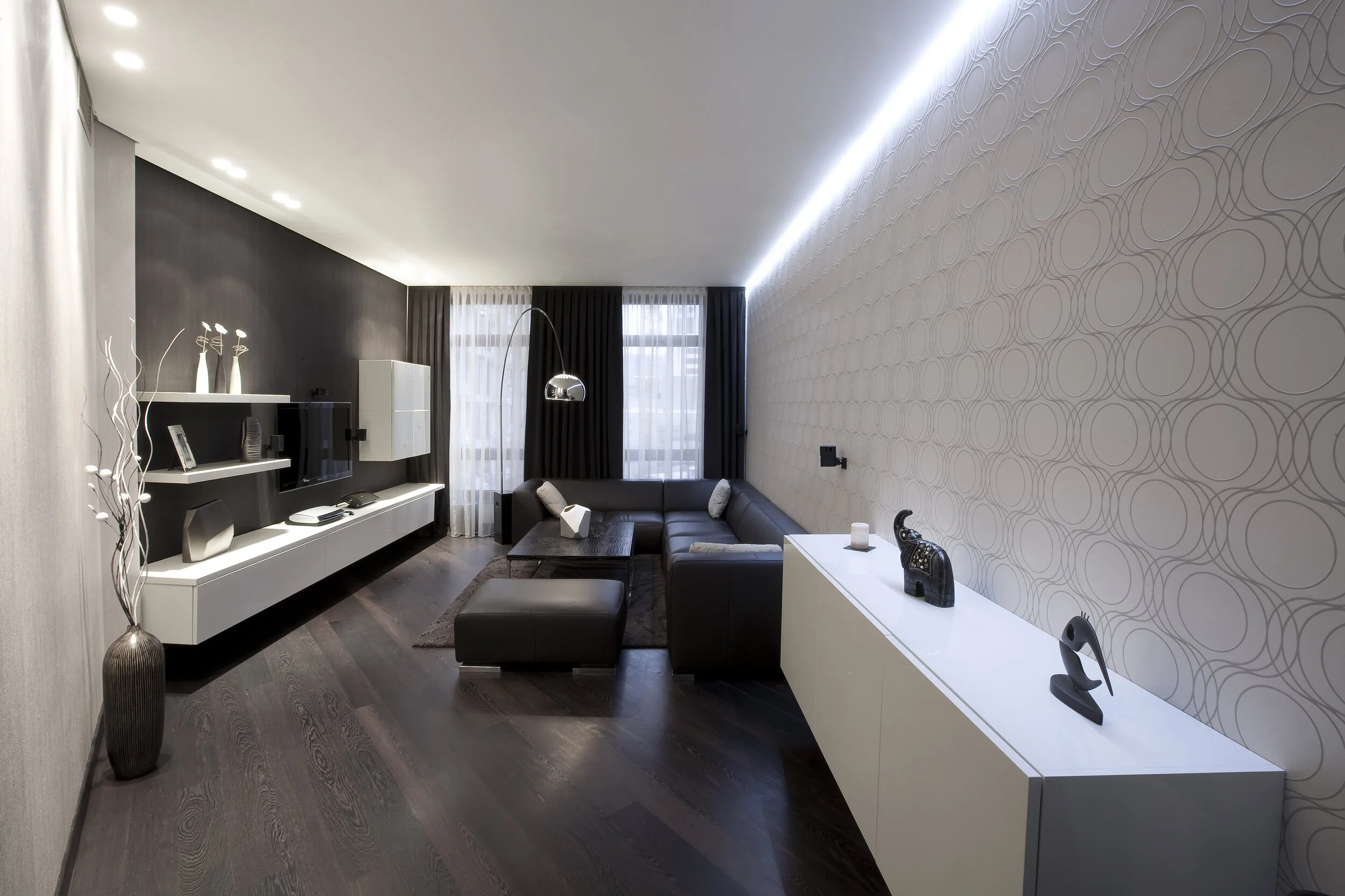 Гостиная черный пол