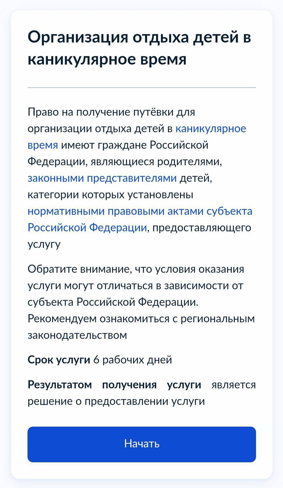 Госуслуги лагерь компенсация