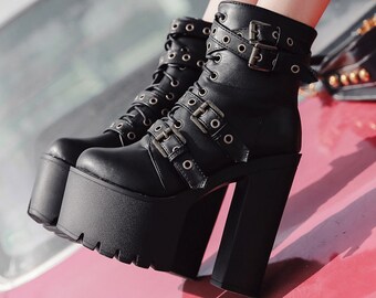 Gothic High Heels, Punk Rock High Heels Leather Womens Boots Autumn Winter, Punk Lolita Sexy Shoes, Dark Goth Harajuku High Heeled Platforms DireDelights 4 .5 out of 5 stars (18) $ 77 .04 . Add to Favorites A Survivor Lace Up Platform Boots In Black PascalNB $ 49 .00 FREE shipping Add to Favorites . . .