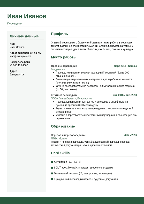 Готовое резюме студента