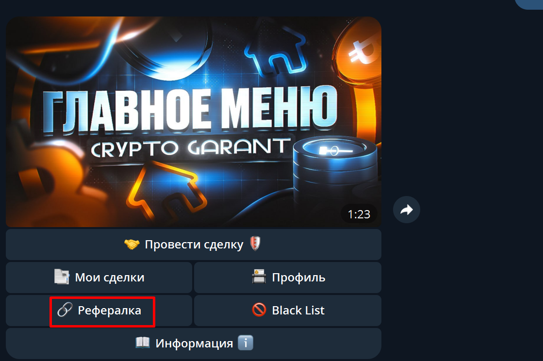 Так-же вы сможете заработать вместе с нами, с помощью кнопки "Рефералка", там всё что нужно, это просто взять свою ссылку и распространять её среди своих знакомых, а так-же в других чатах, если это не противоречит их правилам. Зарабатывать вы будете 2% от вывода того, кого пригласили.