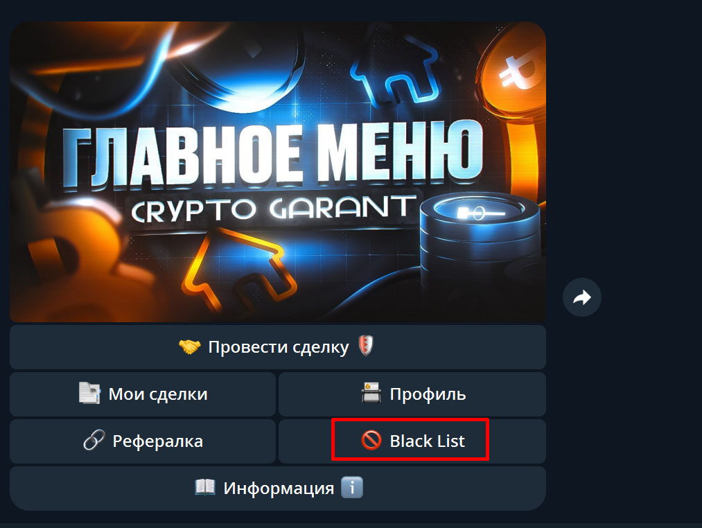 Затем идёт кнопка "Блэк Лист" - здесь вы можете ознакомится со списком скамеров, а так-же имея доказательства, внести сюда скамера, чтобы другие не попались на его уловки, и были осторожны при сделках с ним.