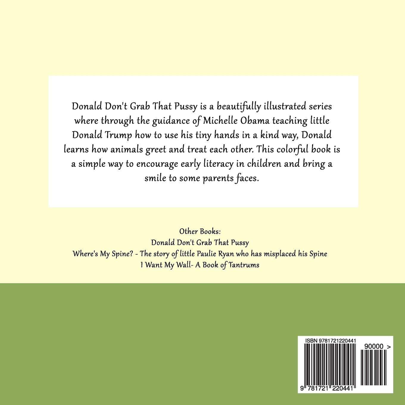 Donald Don't Grab That Pussy: Through the guidance of Michelle Obama and her 5 animal friends, young Donald Trump learns to use his tiny hands in a . . . of treating life with respect and care . 1st Edition