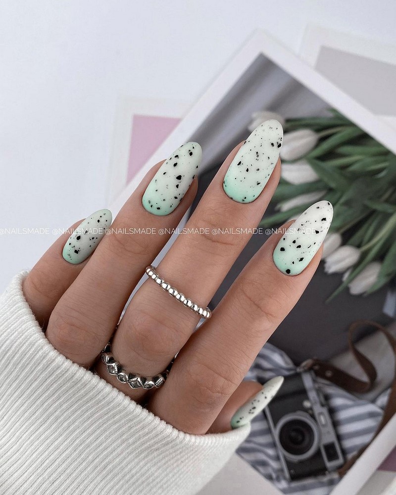Фото идеи - какой маникюр сейчас модно делать в 2021- 2022 году . Тенденции дизайна Осень-Зима . Новинки дизайна ногтей . Черный, зеленый, белый .