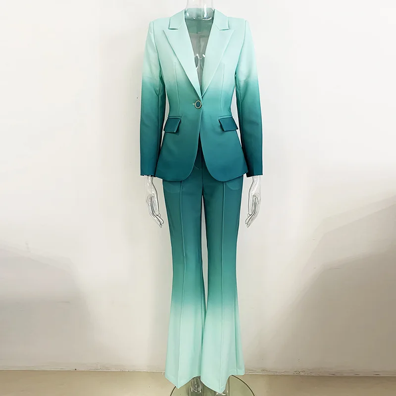 hInVPriWYHere you can buy Gradient Printed Blazer Pants Set One Button 2 Piece Set Office Business Wear Single Buttons Flared Pants Jacket Outfits Women with free delivery to your post office.